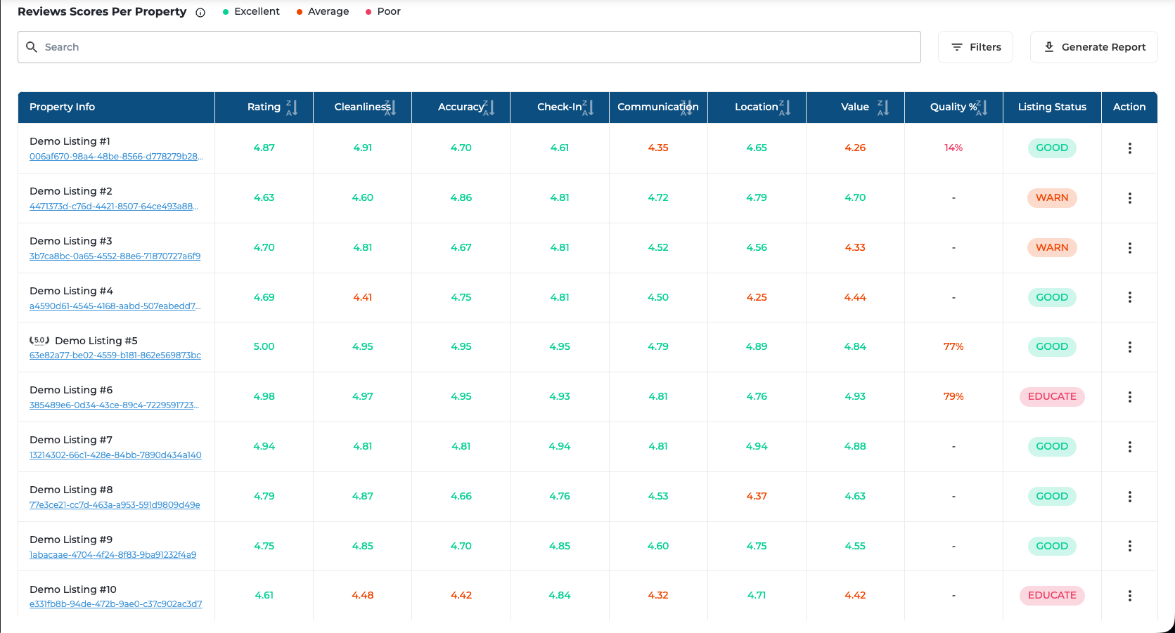 Whether you manage 10 listings or 1,000+, the Hosting Quality Dashboard is designed to: